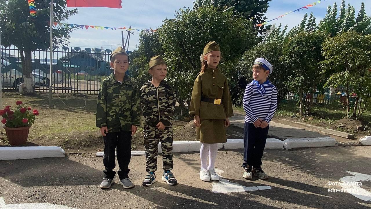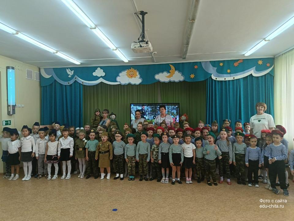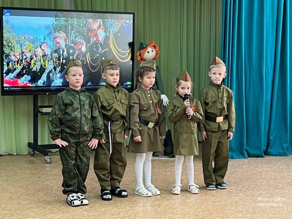 Дети пели военные песни, читали стихи и выполняли строевые действия.