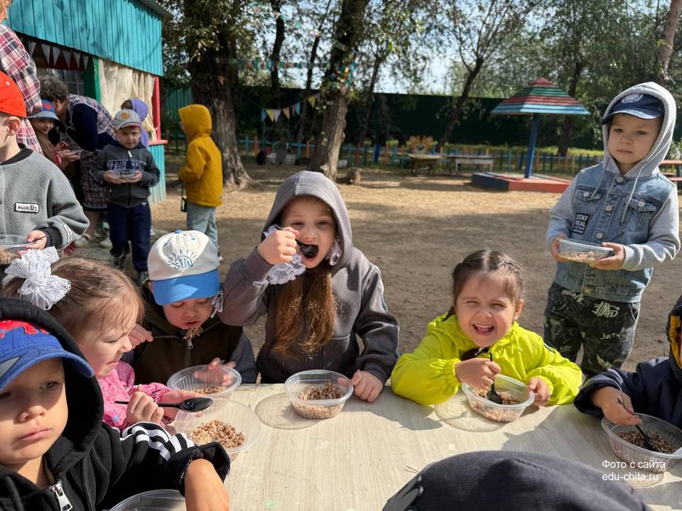 После парада дети переместились на игровые площадки, где их ждали различные активности. Ребята танцевали под военные песни, посетили музей боевой славы, изготовили треугольные письма и отведали солдатской каши, приготовленной в полевой кухне.