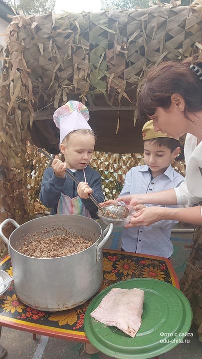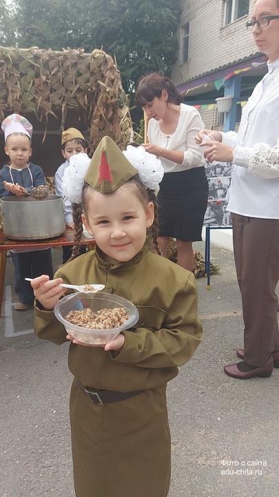 На территории детского сада были организованы тематические площадки: выставка книг о Великой Отечественной войне, мини-музей "Эхо войны", выставка детско-родительских творческих работ, интерактивная зона "Полководцы", полевая кухня.
