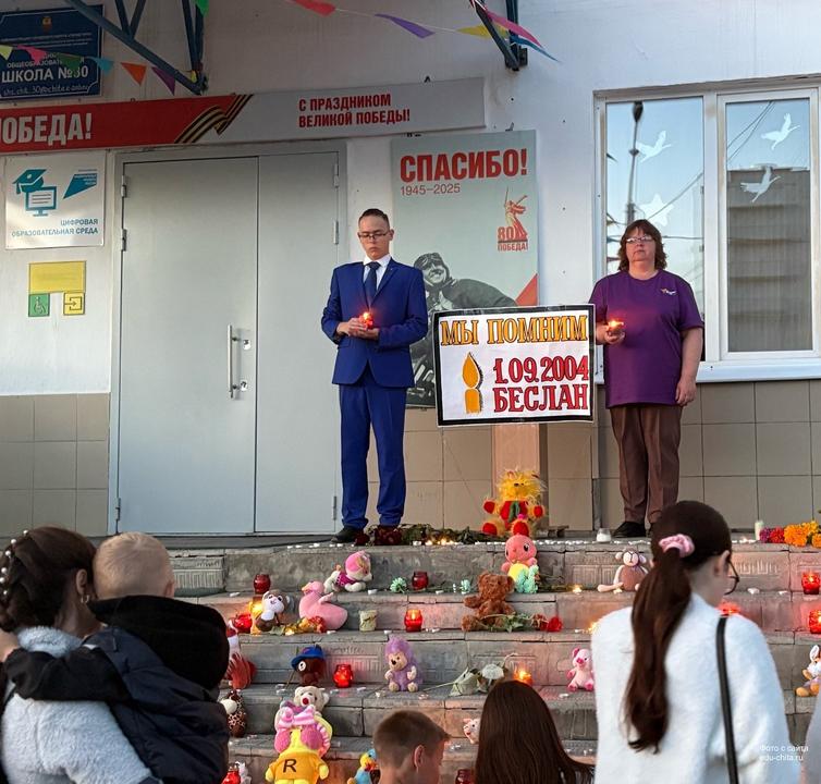 В школе № 30 города Читы была проведена Акция памяти "Свечи Беслана". Ученики, родители и учителя собрались вечером на школьной площадке, чтобы почтить память жертв этого страшного теракта.