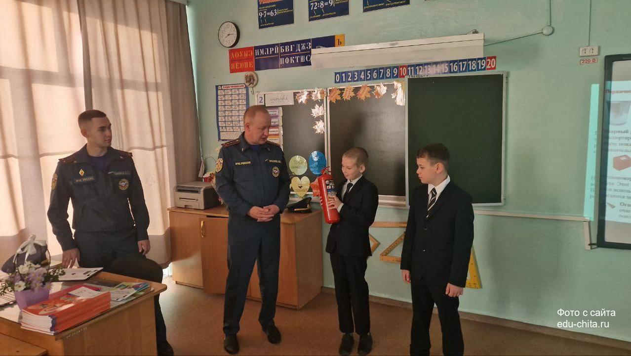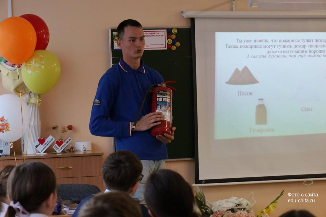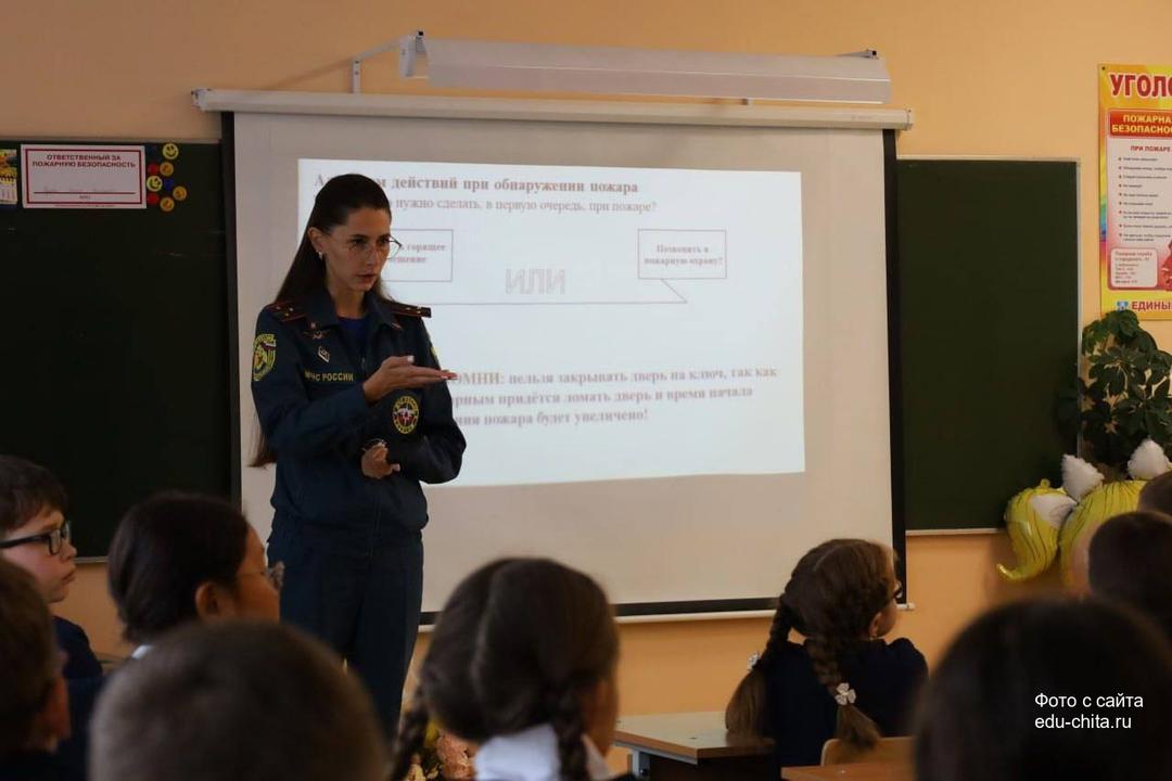С начала сентября в школах Читы прошли классные часы, на которых школьники узнали о правилах пожарной безопасности и о действиях в случае возникновения пожара.