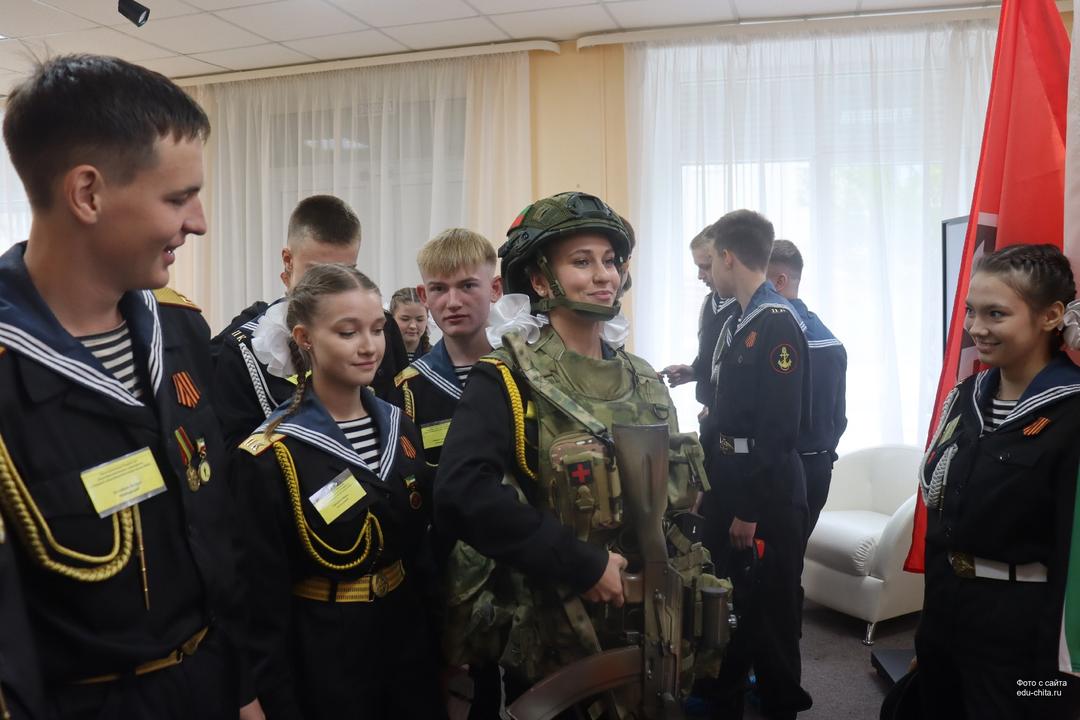 Особенный интерес у юнармейцев вызвало обмундирование и экипировка российских войск, с которыми они получили возможность познакомиться, примерив бронежилет и шлем.