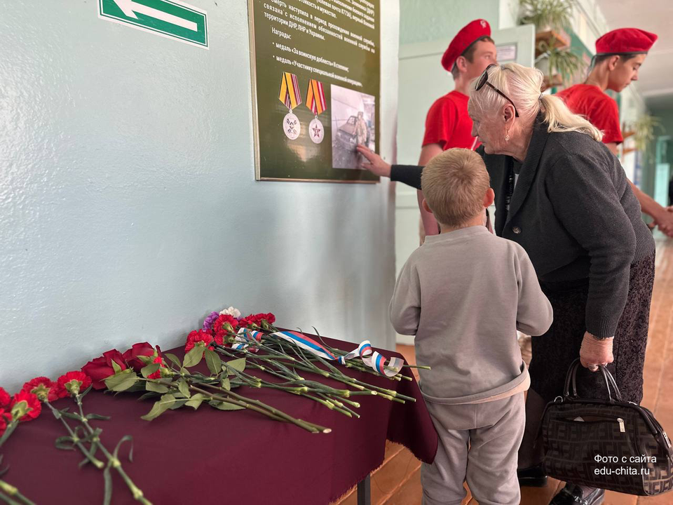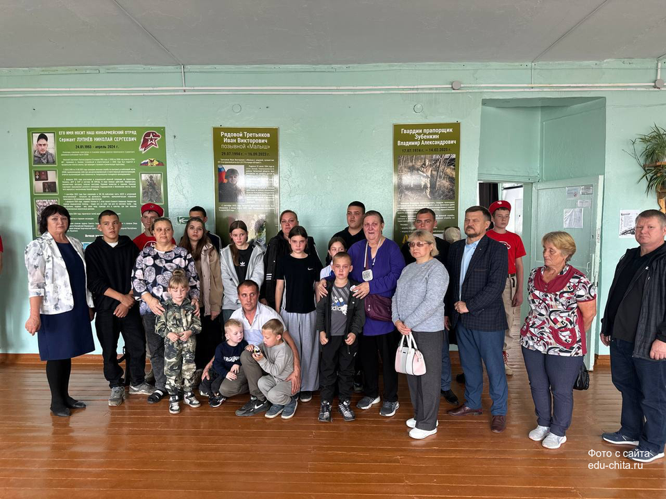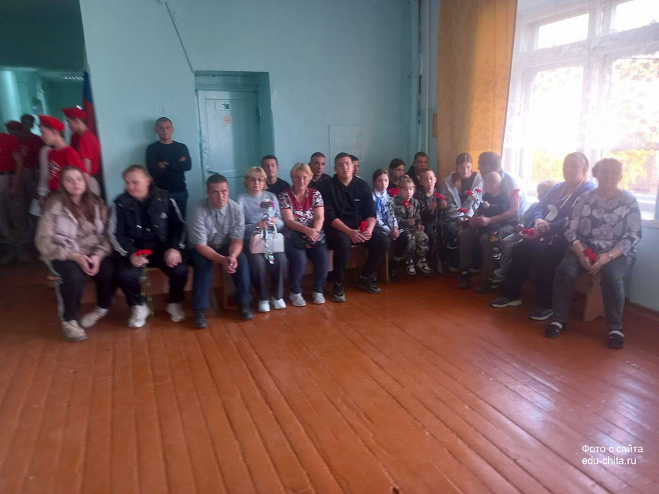 На мероприятии присутствовали глава администрации Черновского района Василий Турсабаев, председатель ТОС п.ЧЭС Дмитрий Тюменцев, родные и близкие героев. Право внести флаг и нести вахту памяти было предоставлено знаменной группе юнармейского отряда. Теперь ученики школы будут хранить память о героях нового времени и передавать следующим поколениям.
