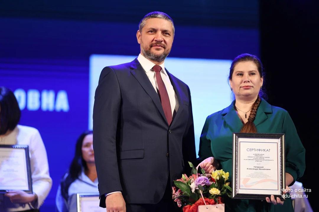 Премии удостоены учитель русского языка и литературы читинской школы № 19 Наталья Толпыгина, учитель истории школы №1 Александра Гагарина, учитель начальных классов школы №9 в Чите Екатерина Стрельникова, учитель биологии и географии школы №19 города Читы Инна Банеева, учитель иностранных языков Анастасия Куюмджян.