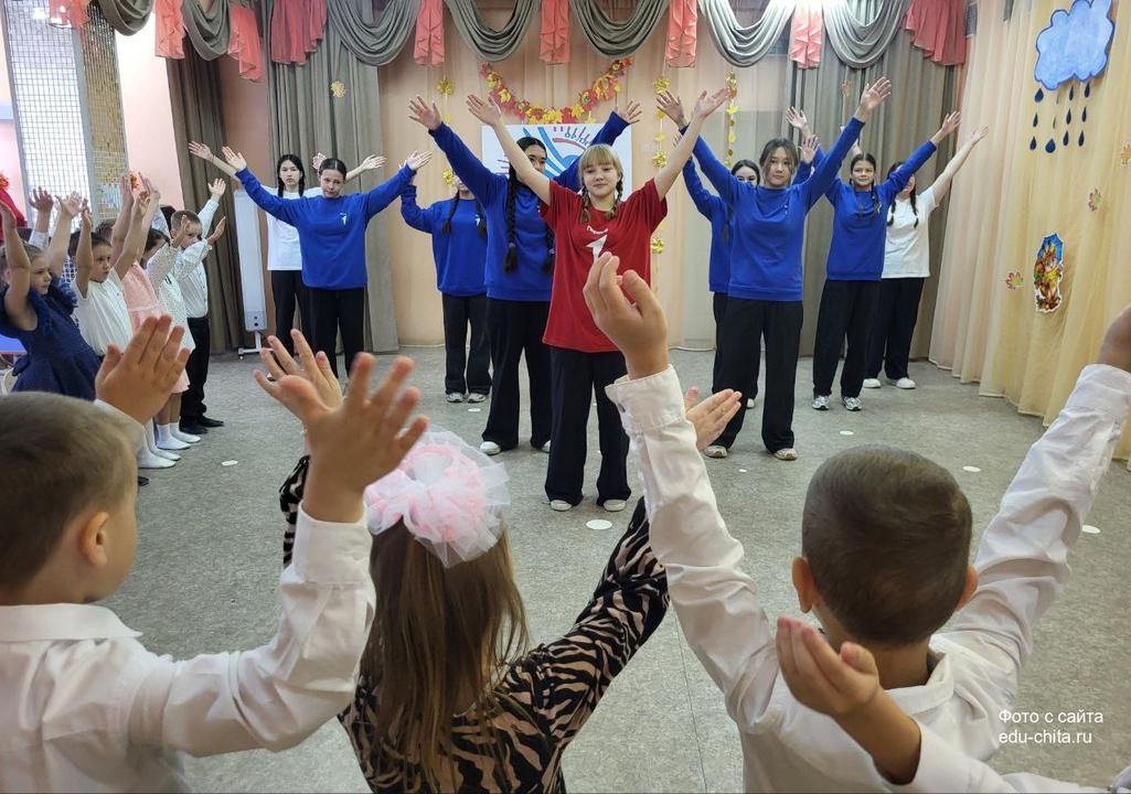 Старшие ребята показали зажигательный флешмоб под гимн "Орлят России", а юные "орлята"-второклассники прочитали напутственные стихи. Также состоялась торжественная церемония повязывания галстуков, которую дети-наставники провели вместе с посвящаемыми.