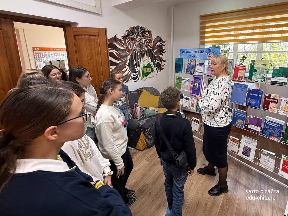 Семиклассники побывали в научной библиотеке ЧГМА на познавательном мероприятии «На пути к призванию». Школьники узнали об истории академии, разгадали тематический кроссворд и прошли квест-выставку «Медицинские науки».
