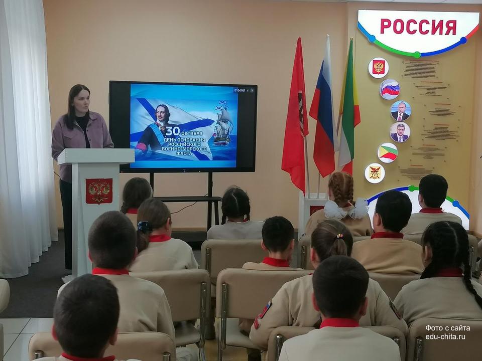 Юнармейцы узнали о истории появления российского флота, о легенде появления Андреевского флага и покровителе всех моряков — Андрее Первозванном. С особым интересом ребята слушали о российских выдающихся флотоводцах: Федоре Ушакове, Павле Нахимове и Степане Макарове.