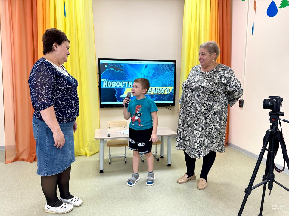 Ребята узнали, чем занимаются журналисты, как появляются новости и почему важно уметь задавать вопросы. А потом сами попробовали себя в роли ведущих и репортёров — брали интервью у воспитателя Елены Владимировны, заместителя директора Елены Викторовны и логопеда Ирины Владимировны.