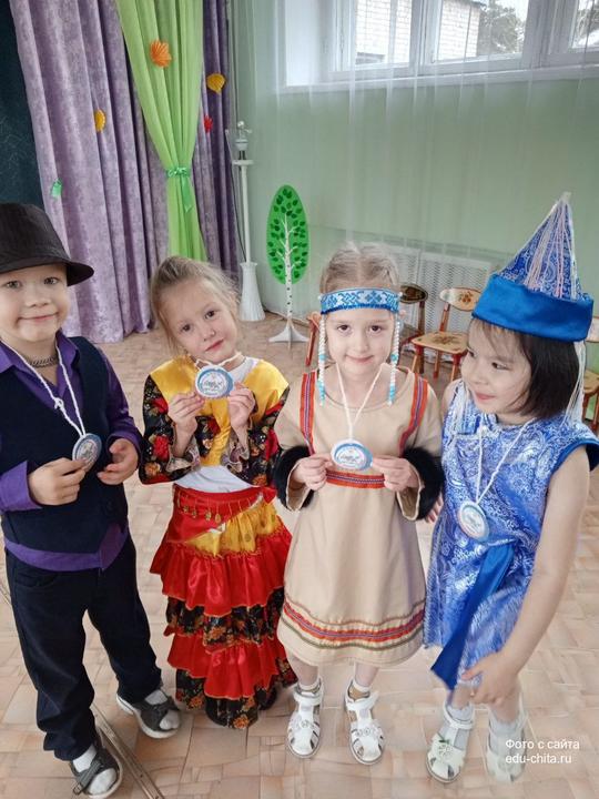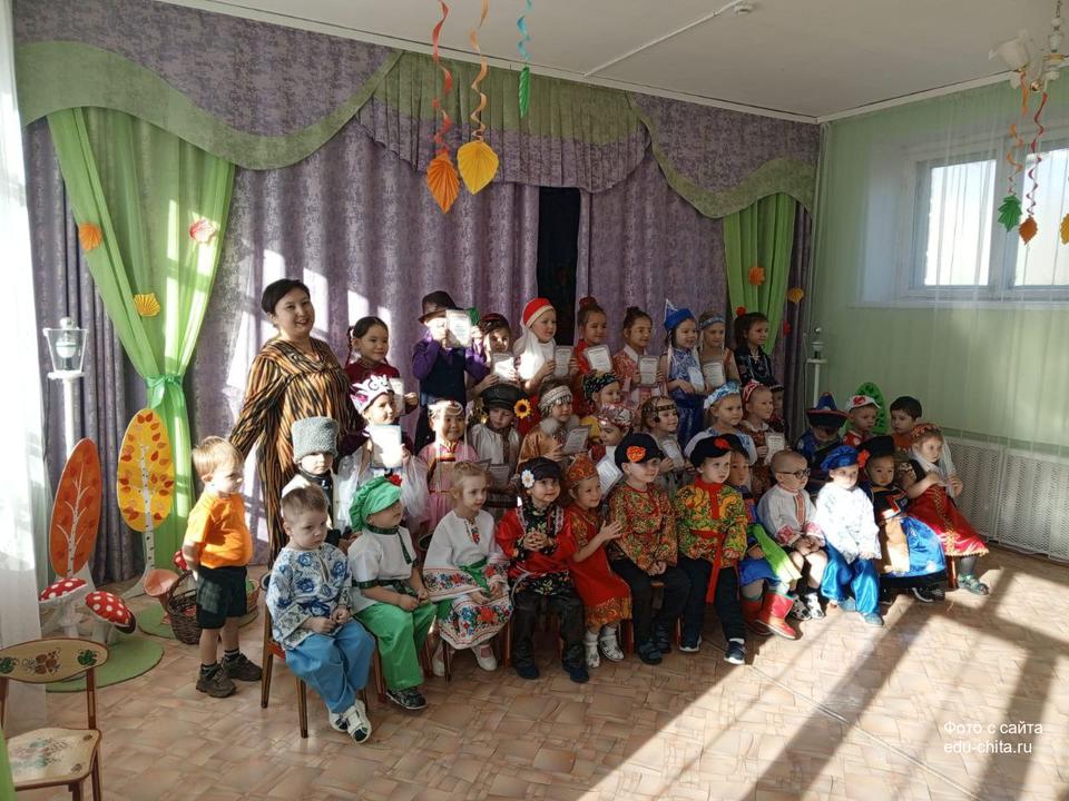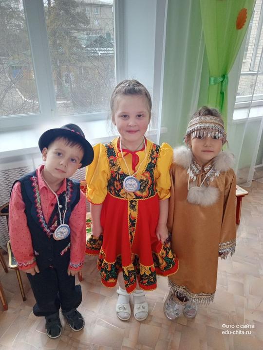 В детском саду № 75 прошёл фестиваль «Мы наследники традиций». Весь день воспитанники детского сада вместе с воспитателями и помощниками воспитателей были одеты в национальные костюмы, представляя разные народы: русских, бурятов, эвенков, цыган, татар, китайцев, узбеков, а также семейских из Забайкалья.
