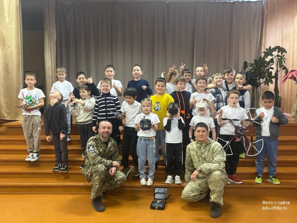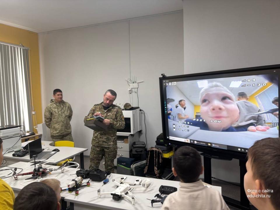 30 октября гостями школьного «Кванториума» стали сотрудники Городского казачьего общества «108-я станица». Атаман Евгений Александрович Попов и казак Андрей Владимирович Перфилев провели для ребят вводную лекцию о беспилотных летательных аппаратах (БПЛА) и их гражданском применении. Школьникам не только показали разные модели заводской сборки, но и продемонстрировали дроны, собранные руками самих казаков.