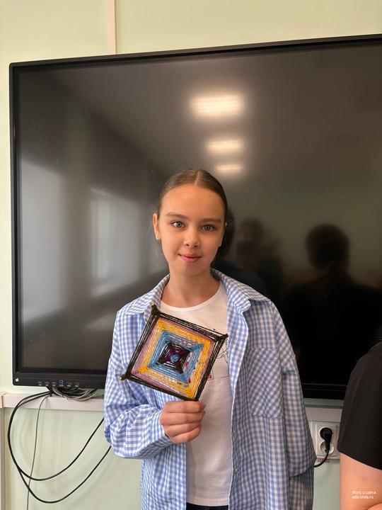 Мастер-класс по плетению мандалы оказался терапевтическим занятием. Под руководством педагога дети создавали замысловатые узоры из ниток. Каждый участник унес домой мандалу, сделанную своими руками.