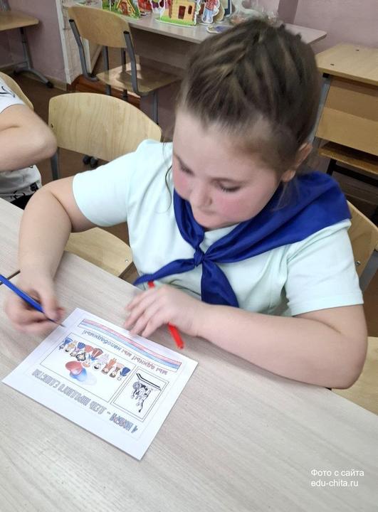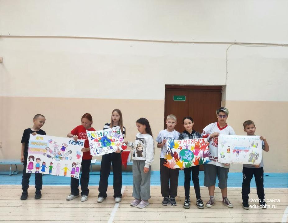 Любители творчества занимались в мастерской «Русский сувенир», создавали открытки для родителей и участвовали в конкурсе плакатов «Я, ты, он, она — вместе дружная страна!».