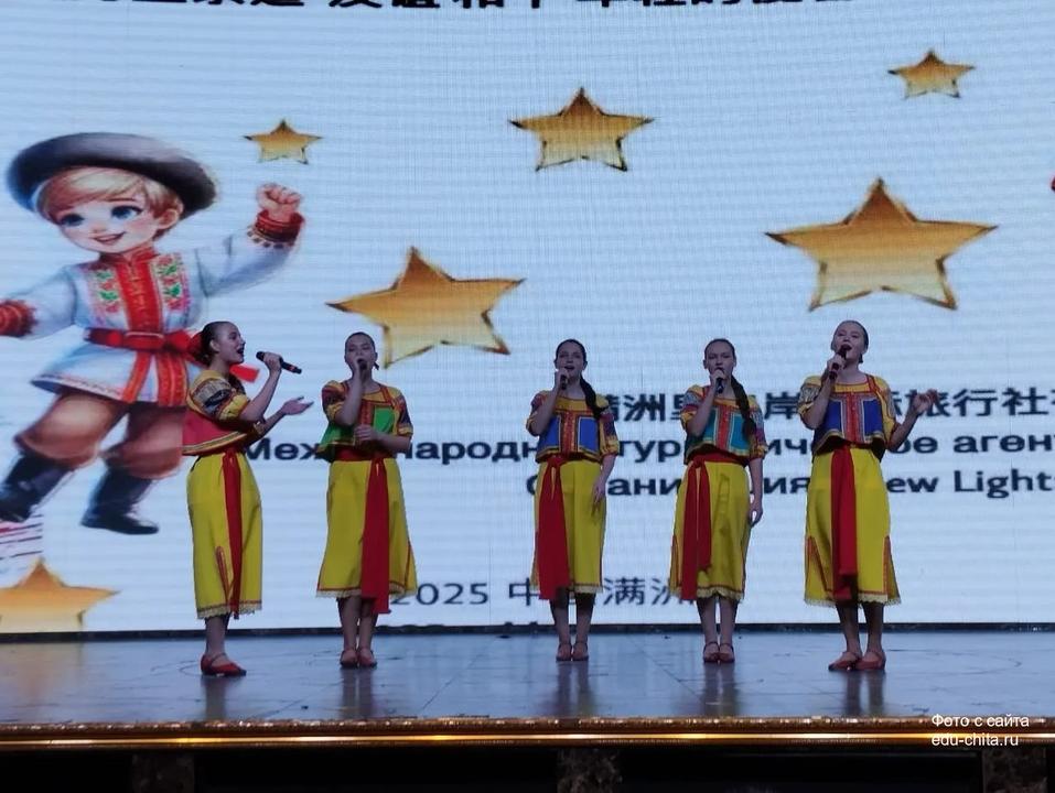 Читинские школьники успешно выступили на международном фестивале культур в Маньчжурии «Великий чайный путь. Мир. Дружба. Посланники — остров дружбы» и стали победителями в различных номинациях. В мероприятии приняли участие около 450 участников из Читы, Бурятии, Забайкальского края и провинций Китая. В течение двух дней юные артисты соревновались в хореографии, вокале, театре и цирковом искусстве.