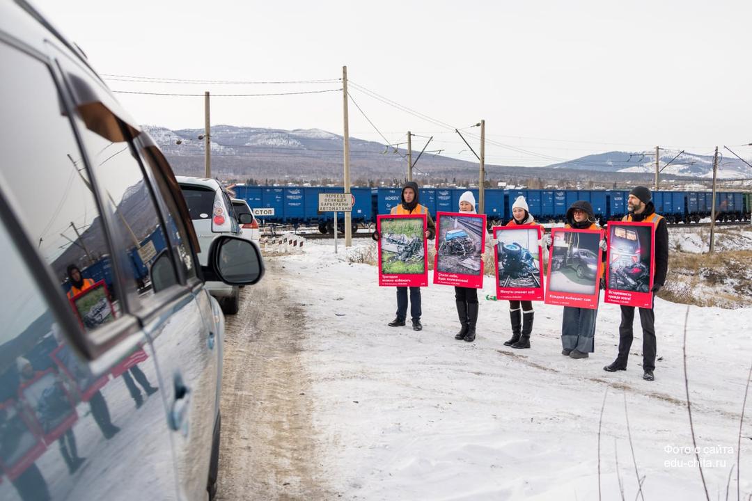 🛑 Напомнили водителям правила пересечения стальной магистрали накануне Всемирного дня памяти жертв ДТП. Профилактические мероприятия провели на переездах в Чите и Белогорске. На больших плакатах продемонстрировали автомобилистам фото искореженных машин, попавших в ДТП на переездах.