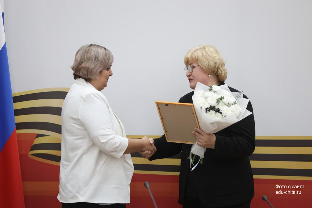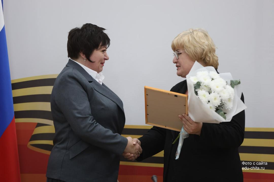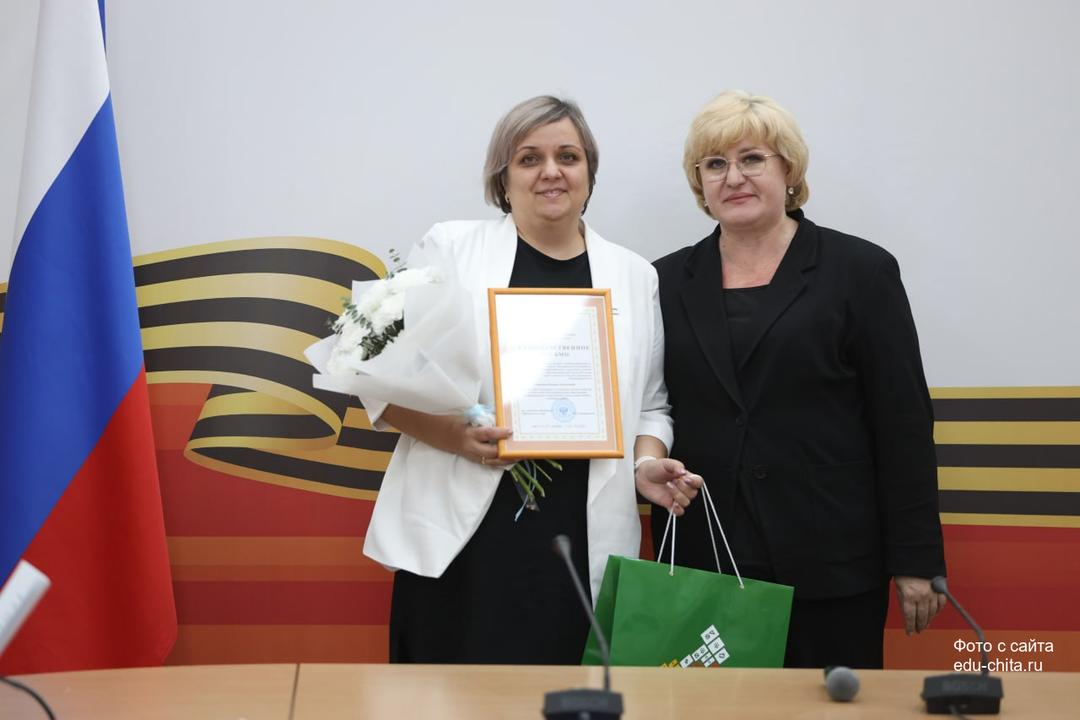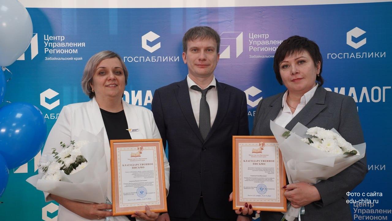 Советник директора по воспитанию школы № 10 имени Героя СССР В. Х. Буйницкого Надежда Пшеничникова и заместитель директора школы № 6 Елена Харина получили благодарственные письма за свой вклад в развитие государственных пабликов. Награды им вручили заместитель председателя правительства края Вячеслав Кулаков и министр образования Забайкалья Марина Секержитская.