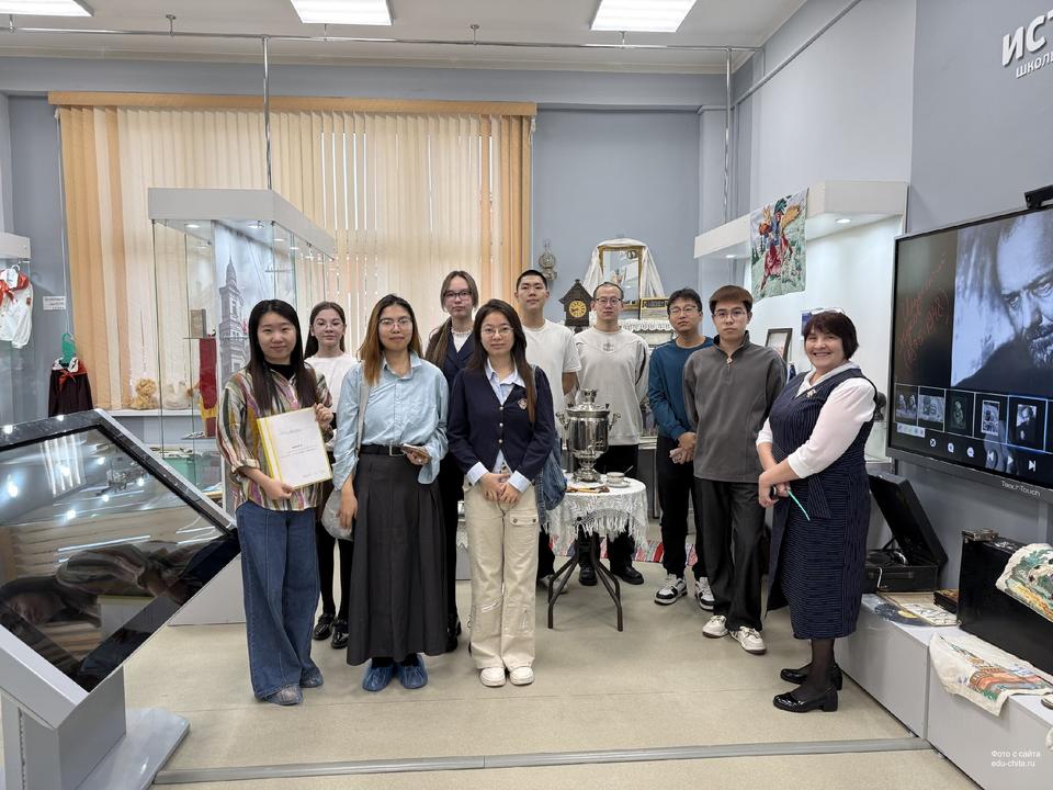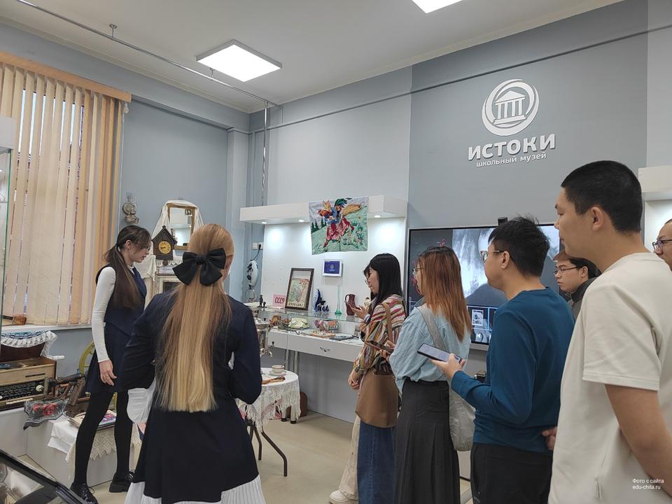 Недавно музей школы № 35 посетила делегация китайских студентов. Школьные экскурсоводы Александра Ткаченко и София Добровлянина рассказывали гостям об экспонатах и истории России.