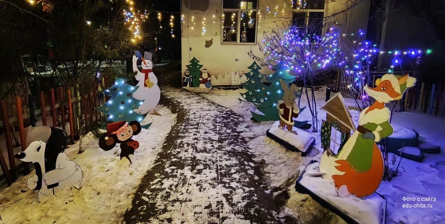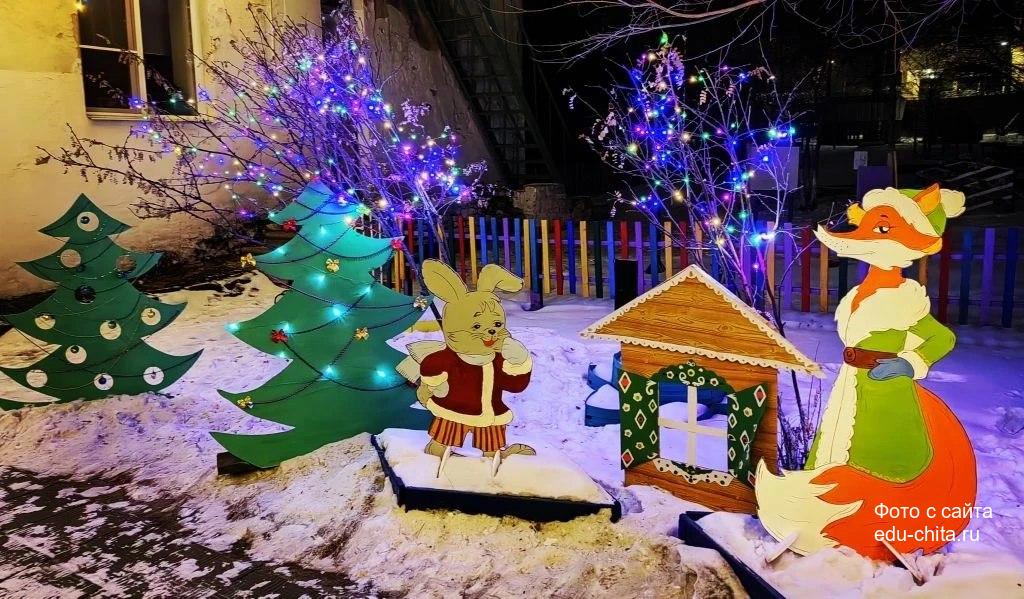 Дошкольные учреждения украшают свои территории, здания и помещения праздничными элементами: яркими шарами, сверкающими гирляндами и нарядными елками.