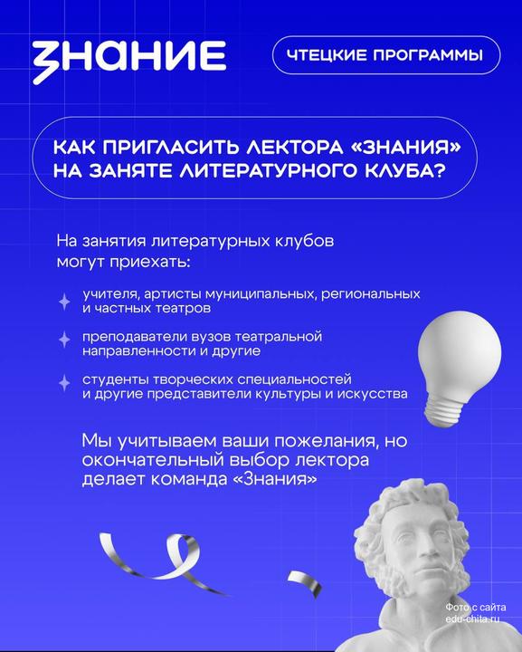 Теперь у каждого клуба есть возможность пригласить на занятие лектора или деятеля искусств от «Знания»!