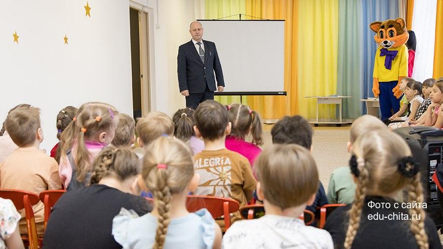 Встречу с воспитанниками читинского детского сада №12 провели в игровом формате с участием аниматора-волонтера в образе кота Леопольда. 35 дошколят посмотрели тематические мультфильмы, узнали от инспектора по делам несовершеннолетних Забайкальского линейного управления МВД на транспорте о том, как себя вести на станциях и в пассажирских поездах, ответили на вопросы тематической викторины и обсудили сюжеты плакатов выставки «Железная дорога БЕЗ ОПАСНОСТИ».