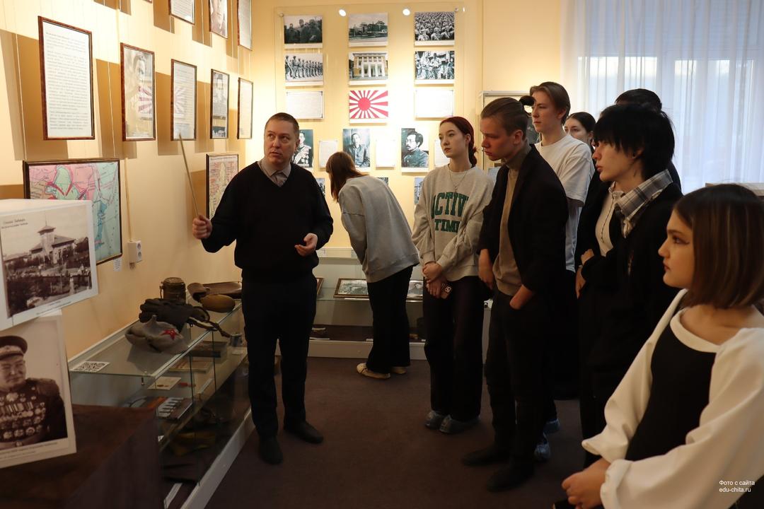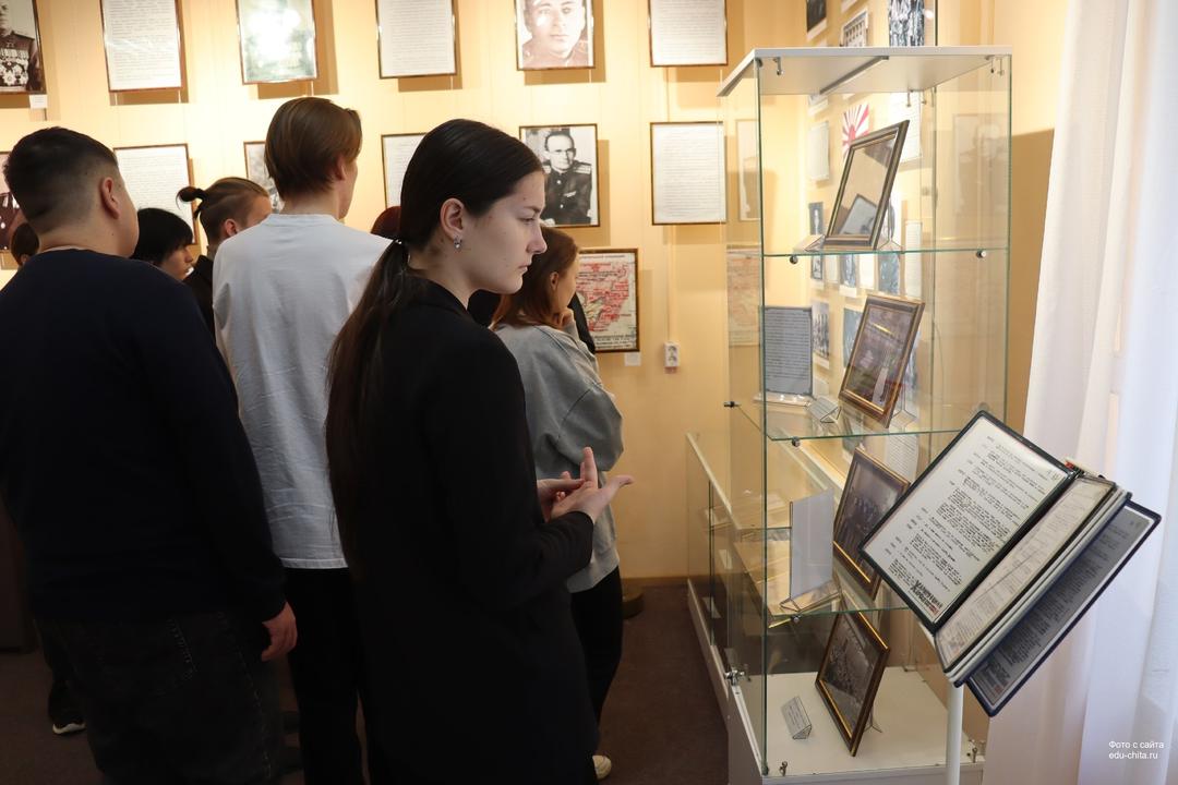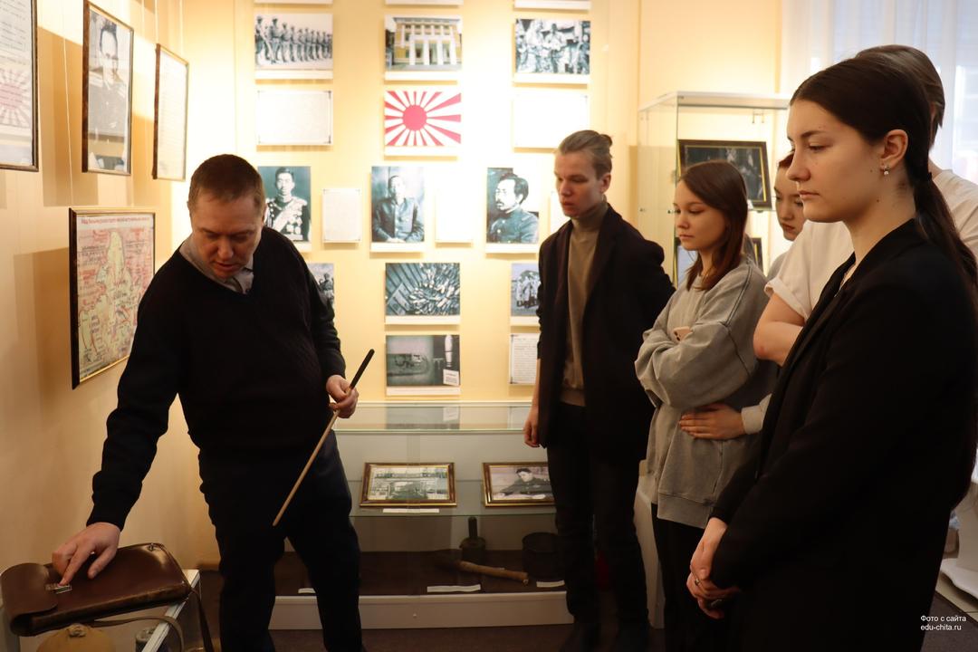На экскурсии «Забайкальский фронт. Герои и подвиги» студенты подробнее узнали о людях, приближающих победу в войне над Японией в августе 1945 года. Кроме того, все желающие смогли взять в руки экспонаты и поближе с ними познакомиться.