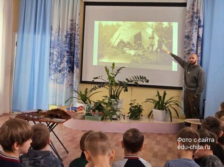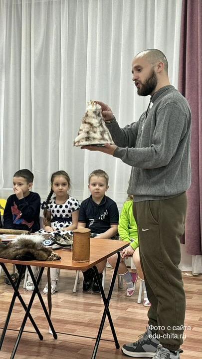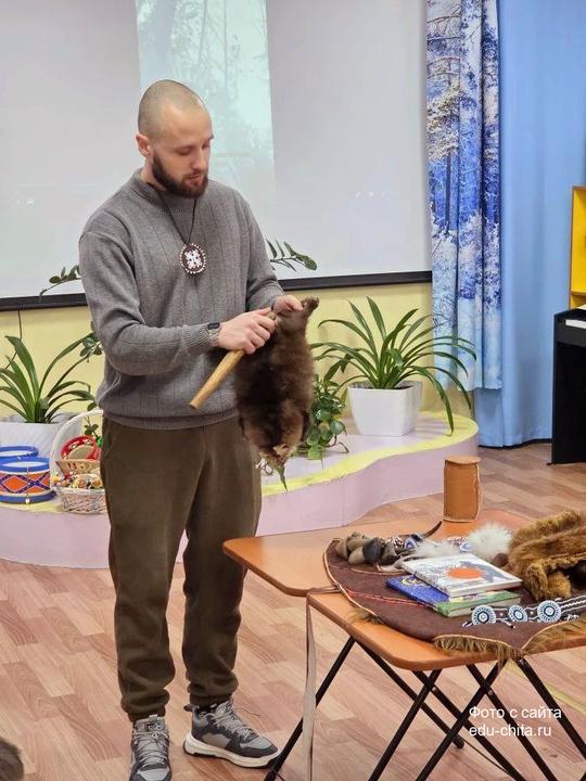 В ходе занятия Марков предоставил детям обширную информацию о коренном народе Забайкальского края — эвенках. Он рассказал о жизни, традициях, культурных особенностях и семейных ценностях этого этноса, а также продемонстрировал экспонаты, отражающие их быт и образ жизни.