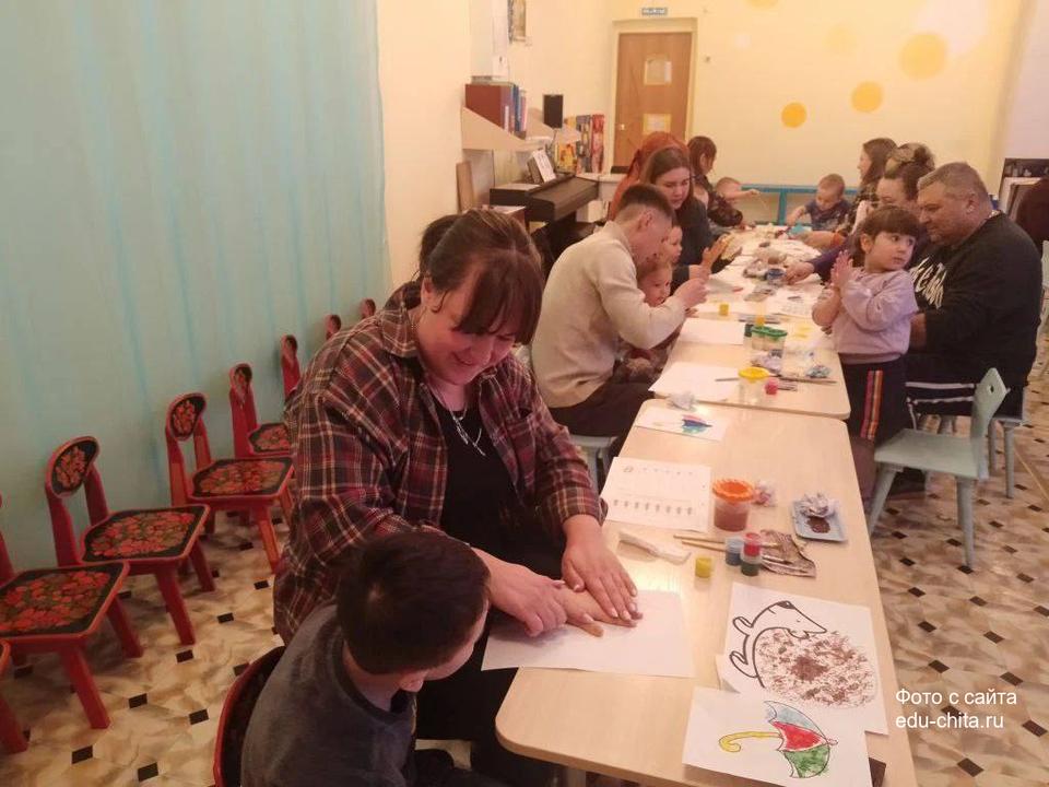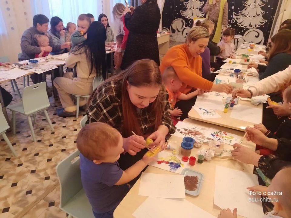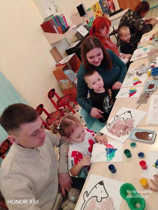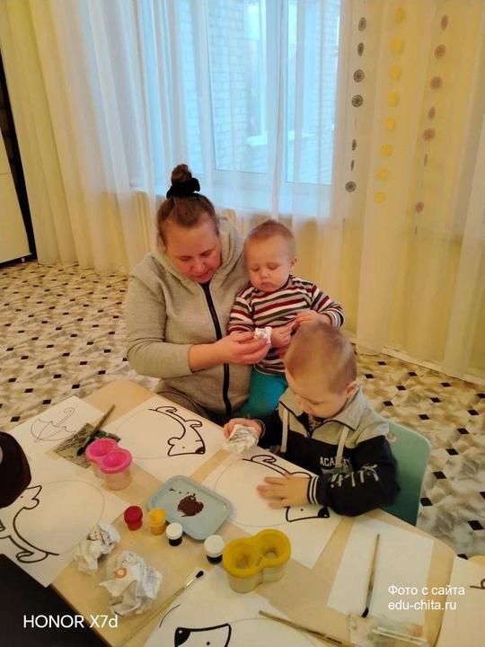 На этом занятии родители вместе с малышами учились новым способам рисования: ватными палочками, ладошками и другими.