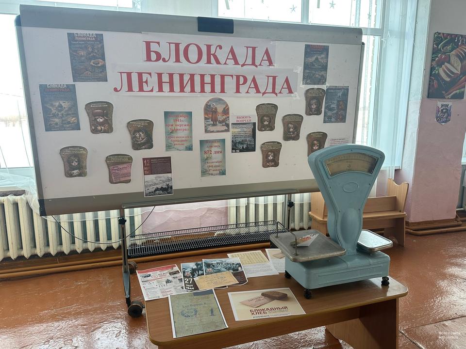 В актовом зале школы создана тематическая зона, позволяющая учащимся визуально ознакомиться с ключевыми аспектами блокадного периода. В частности, посетители могут увидеть символические 125 граммов хлеба, который являлся суточной нормой для жителей города, а также услышать биение метронома, ставшего одним из символов блокады. Зона способствует созданию атмосферы, передающей дух стойкости и мужества ленинградцев.