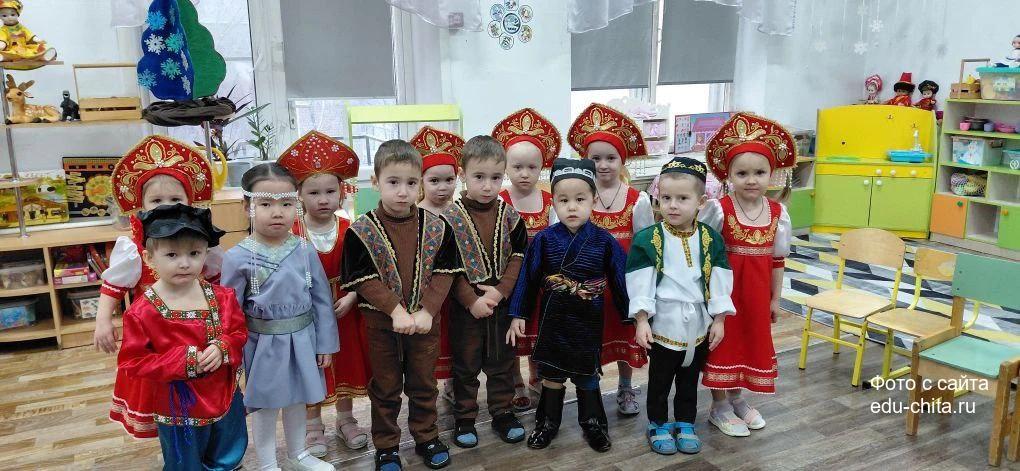 В детском саду № 106 в рамках реализации мероприятий, посвященных Году единства народов России, в группе «Гномики» прошел фестиваль дружбы. В ходе мероприятия воспитанники продемонстрировали национальные костюмы, познакомились с культурными традициями различных народов Российской Федерации, а также с народными сказками и песнями.