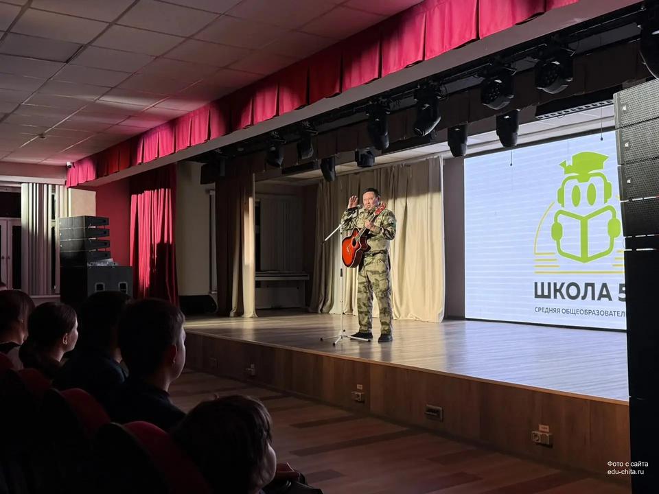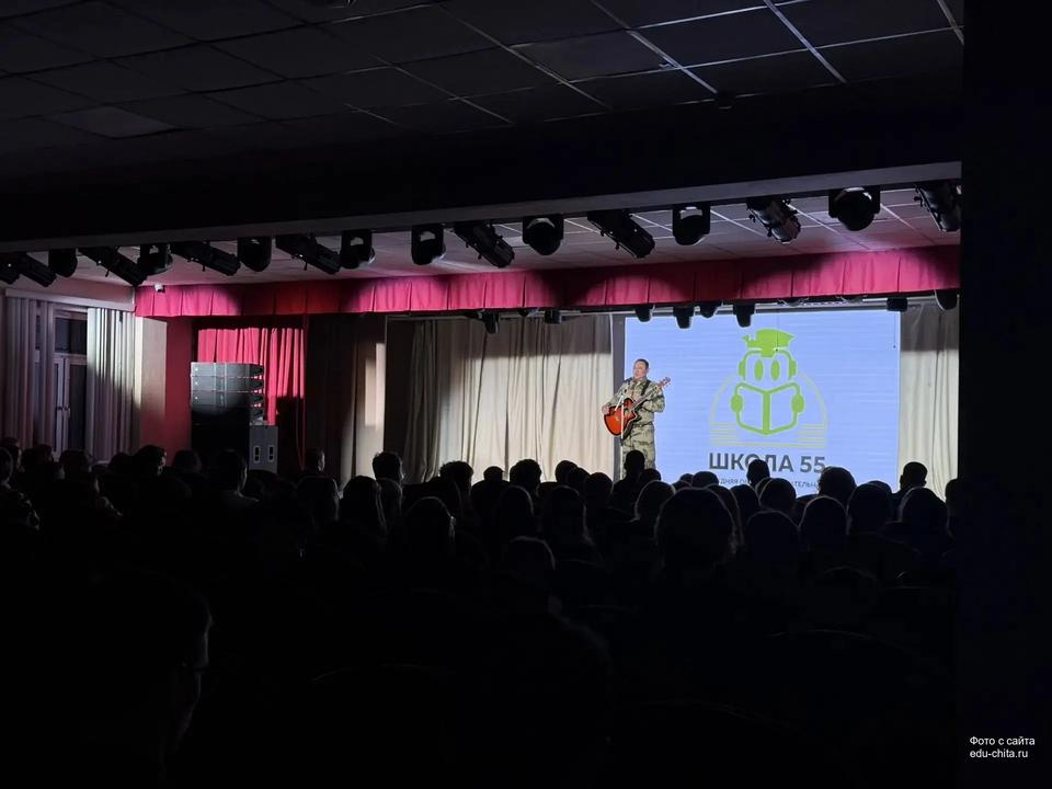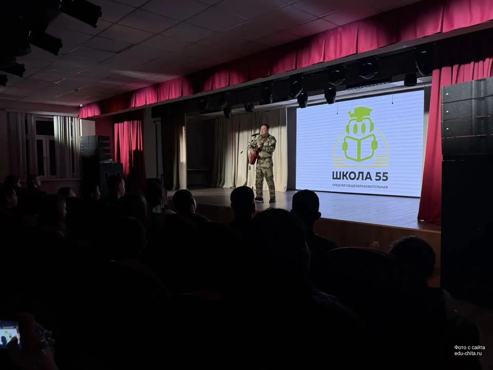 В рамках месячника патриотического воспитания в школе №55 прошла встреча с известным актёром и режиссёром Забайкальского краевого драматического театра имени Н. Березина, членом Общественной палаты Евгением Нимаевым.