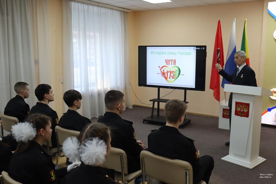 Сегодня в Центре героико-патриотического воспитания «Дом юнармии города Читы» для юнармейцев Почетного караула им. Н.А. Михайлова МБОУ СОШ № 11 г. Читы прошло познавательное занятие, посвященное истории улиц города Читы, приуроченное к 175-летию присвоению Чите статуса города.
